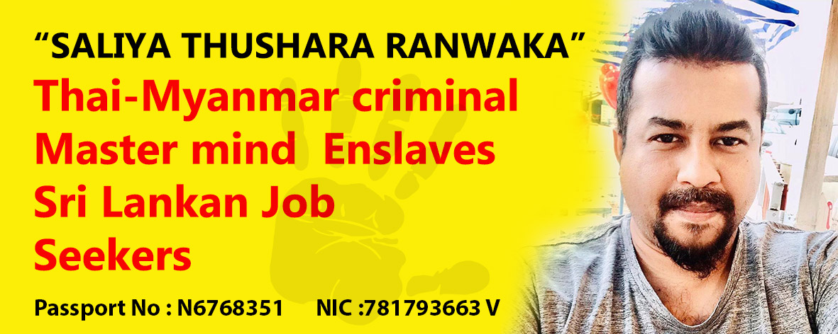 This is regarding the Criminal Vitharanalage Thushara Saliya Ranawaka currently hide in Laos. This person made online scams, Money frauds, Humant trafficking, Human smuggling kind of criminal activities in Sri Lanka and thereafter Saliya ranaway and hide in Laos. This person was directly supported by the former president Mahinda Rajapaksha and his government. Currently he hide in Laos city and own a hotel. People who trapped in the Miyanmar area; this criminal is behind action. He had carried out a huge money fraud from Sri Lankan nationals, promising them that jobs in Canada will be provided for them. Profile : Local Address : No 10, Godagedara, Minuwangoda DOB : 1978.06.27 School Ananda College, Colombo NIC : 781793663 V PP NO : N6768351 Current Location : VT-SKYSHIP-Hotel, Vientiane, Laos